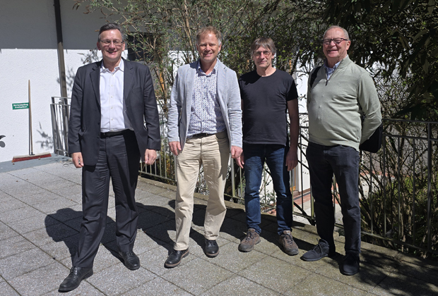 Von links: Andreas Kraft (Referent Technik und Umwelt), sowie die Sachverständigen Alexander Lange (Gesellschaft für Holzverarbeitung), Christoph Wissel (Sachverständiger Zimmerer) und Manfred Huber (Zimmerei-Dachdeckerei Manfred Huber).