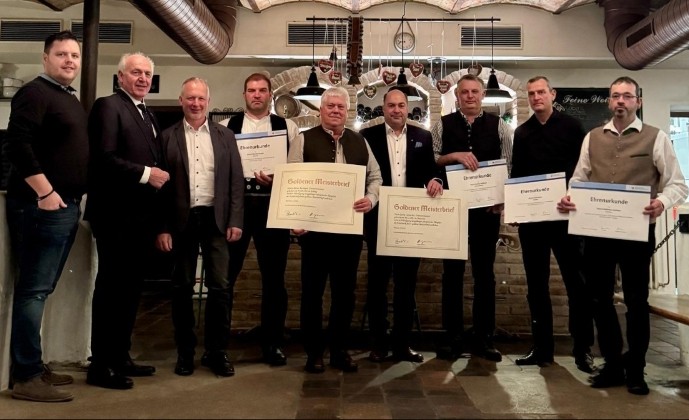 Ein weiterer Höhepunkt war die Verleihung zweier Goldener Meisterbriefe durch Franz Xaver Peteranderl, Präsident der Handwerkskammer für München und Oberbayern. Diese besondere Auszeichnung erhielten Anton Anzinger aus Eitting sowie der Obermeister der Innung, Georg Lippacher aus Ottenhofen.