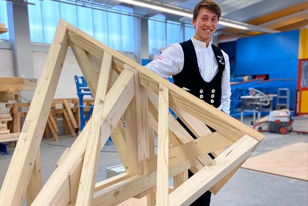Marco Schmidt (22) gehört seit 2019 zur Zimmerer-Nationalmannschaft. Als Geselle arbeitet er im Innungsbetrieb Zimmerei Rehm in Hilpoltstein (ZI Schwabach/Roth/Hilpoltstein). Sein Chef ist Zimmerer-Weltmeister 2015 Simon Rehm. Im Interview verrät Marco Schmidt unter anderem, wie sich das Team in Pandemie-Zeiten fit hält und inwiefern er von der Wettbewerbserfahrung seines Chefs profitiert.