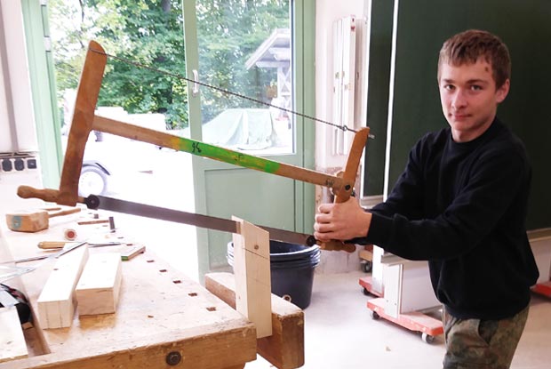 Nach einem Monat im Berufsgrundschuljahr-Zimmerer erzählt Maxi Kirr (16) aus Pittenhart: „Bisher gefällt es mir echt gut“, er macht sein BGJ an der Berufsschule Traunstein: „Der Unterricht ist ganz anders als früher an der Mittelschule. Man hat viel mehr Praxis und alles ist auf den späteren Beruf als Zimmerer ausgerichtet.“